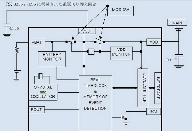 エプソンのリアルタイムクロックモジュール RX-8035の中で使われています。