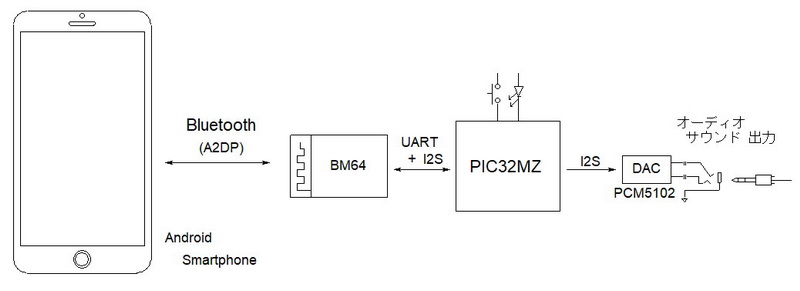 本プロジェクトファイルは、マイクロチップのHarmonyサンプルソフト"C:\microchip\harmony\v2_04\apps\bluetooth\audio\BM64_a2dp_hfp"(PIC32MX470F搭載PIC32 Bluetooth Audio Development Board)を PIC32MZ用に変更したものです。 |