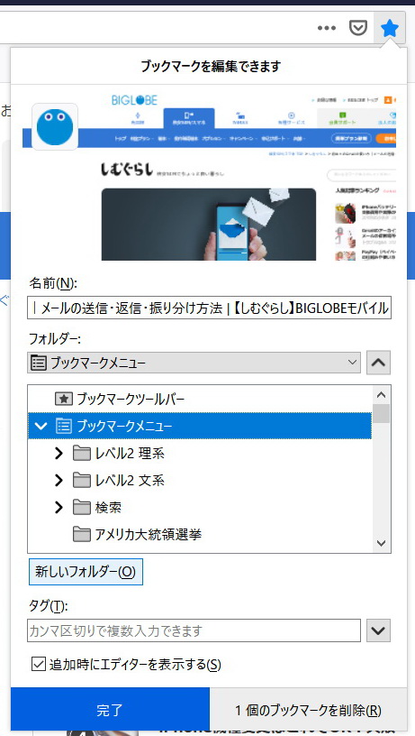| 1. このページをブックマーク | 2. ブックマークメニューを選択後 選択を選択 | 3. ブックマークメニューで あたらしいフォルダ作成 | |