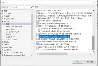 [ツール] → [オプション] でダイアログを開き、左側のペインのテキストメニューから、デバック → 全般 を選択