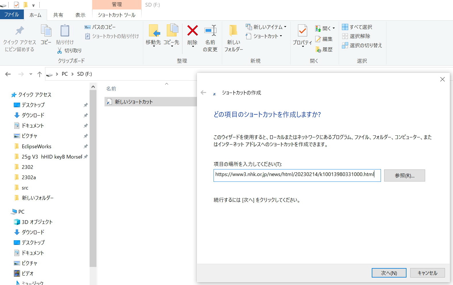 → ショートカットファイルを作成する