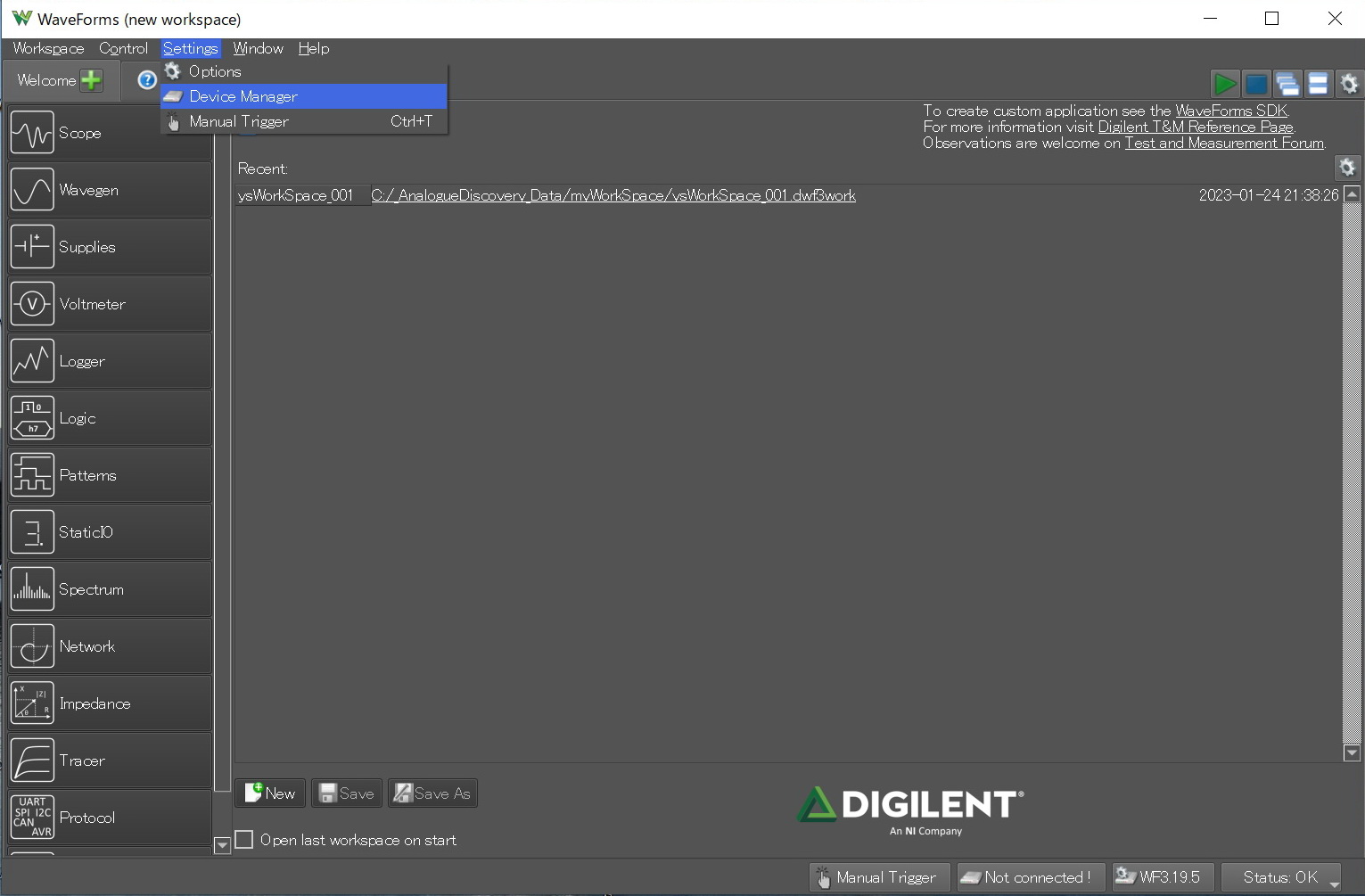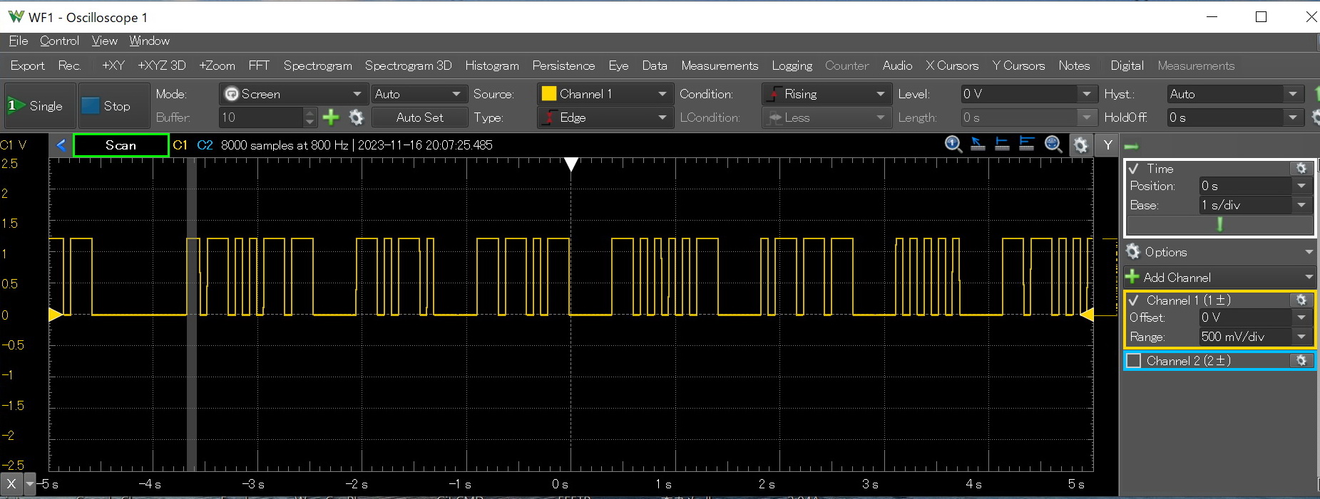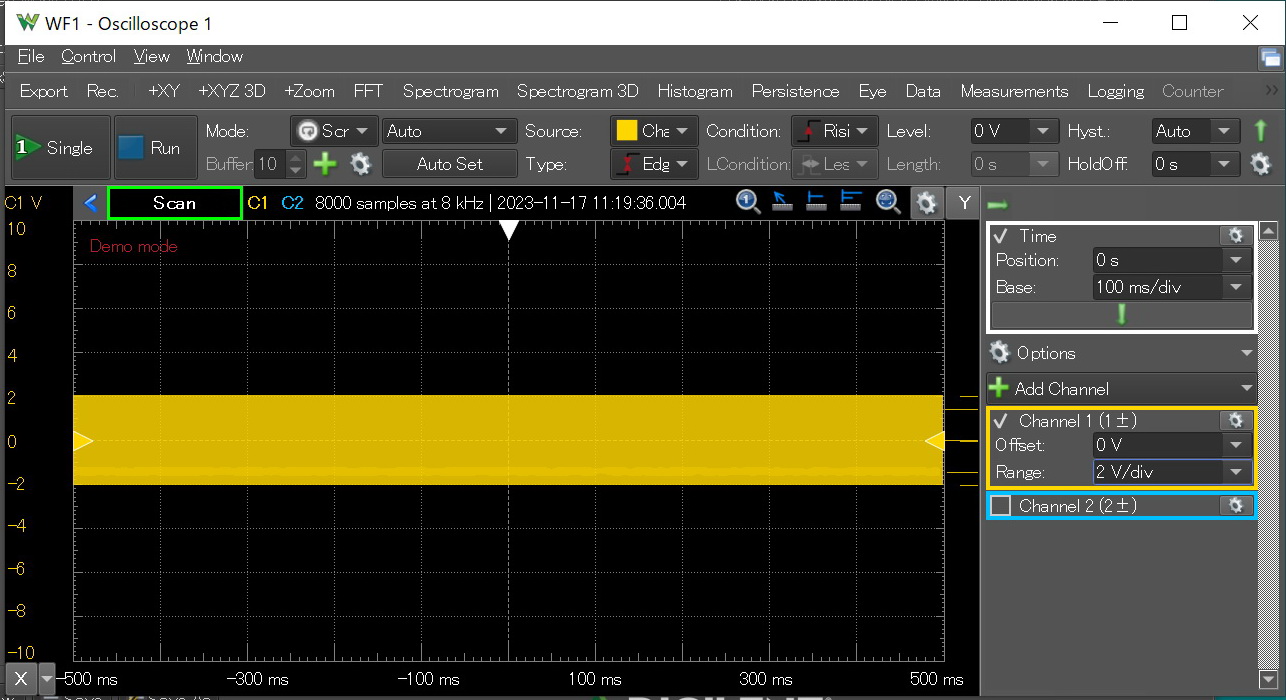 アナログ ディスカバリー2とのUSB接続が不調の時下記のような波形がでることがある。