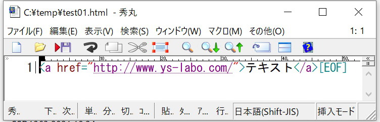 テキストエディタに以下を記述して、ファイル名を テスト.html とする。