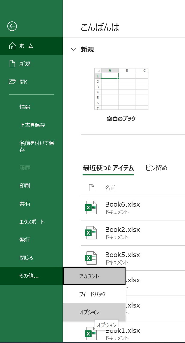 | 1. メニューバーから[ファイル]タブを選択 | 2. 左側バーのリストから[その他...] の [オプション]を選択 | 3. [Exelのオプションダイアログ]画面が現れるので左側バーのリストから[詳細設定]項目を選択する。 編集オプションの中にある "□ オートコンプリートを使用する" のチェックボックスのチェックをはずす |