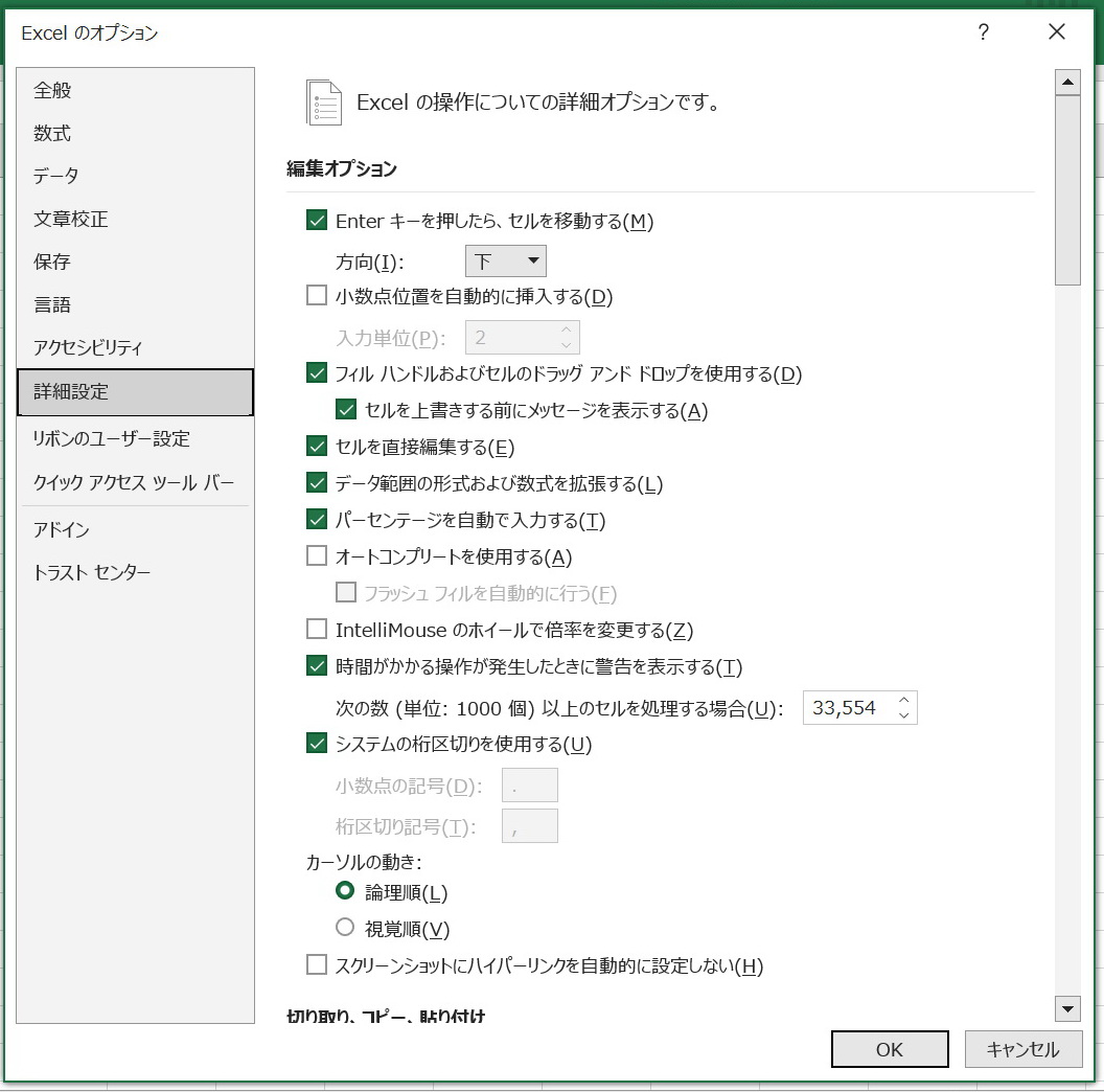 (セルに文字を入力している途中に、前の行などに入力した内容が入力候補として表示されるないようにする)