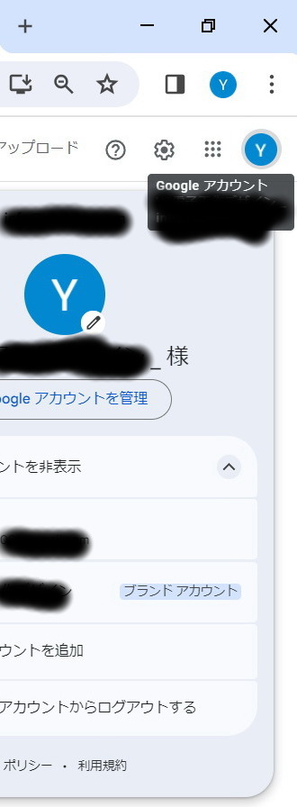 アカウント変更方法 → 右上のアイコンをクリック