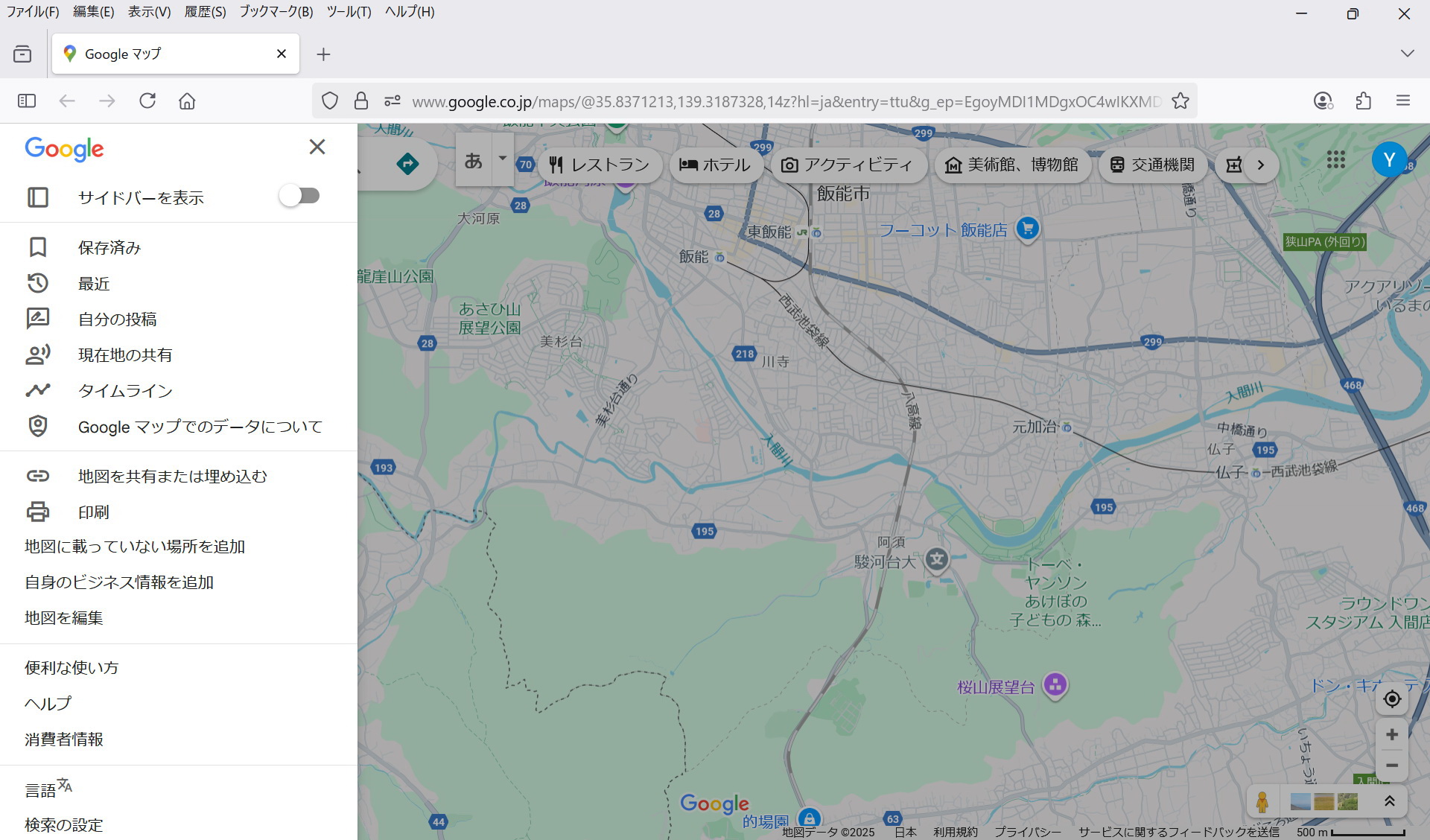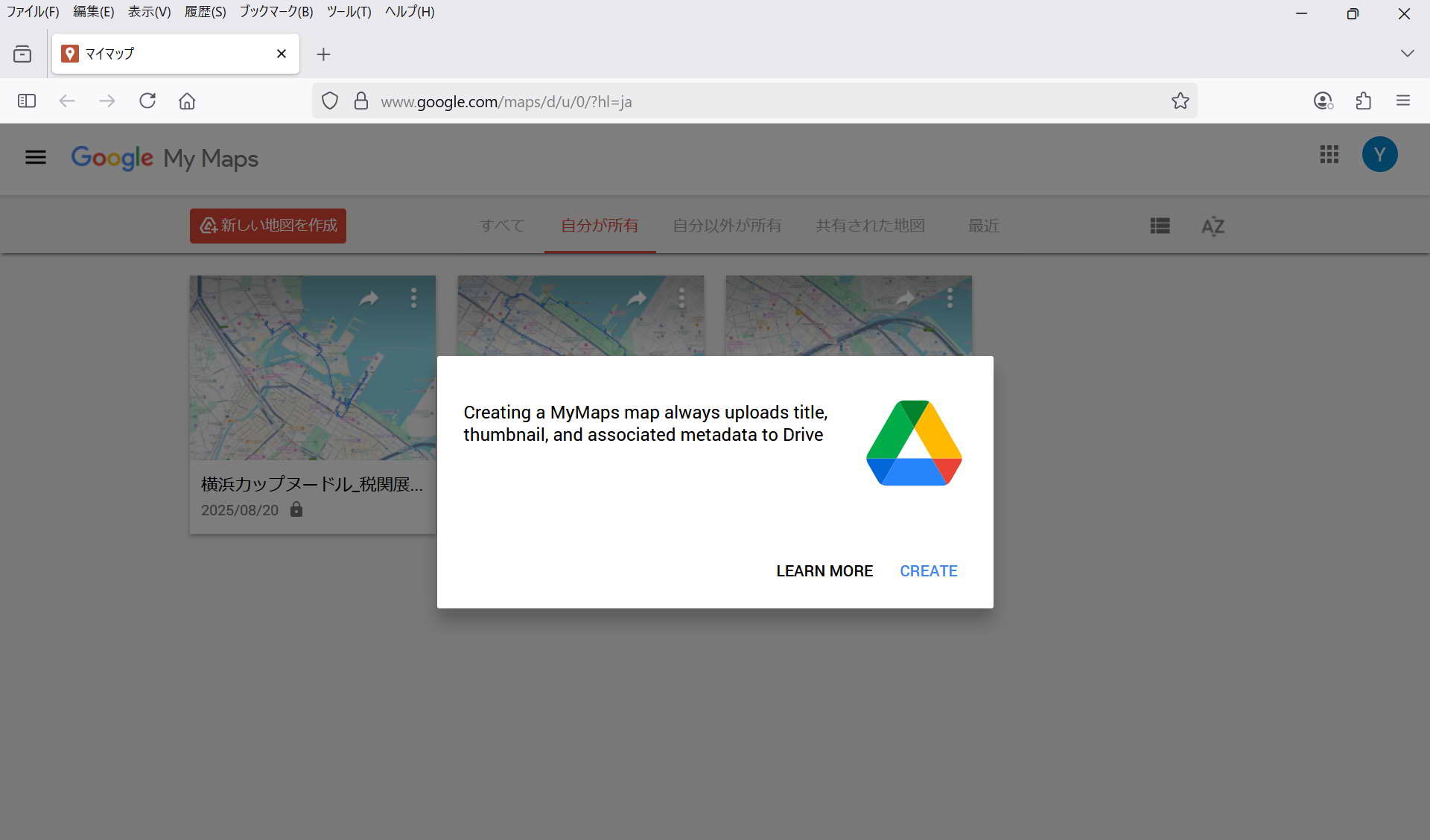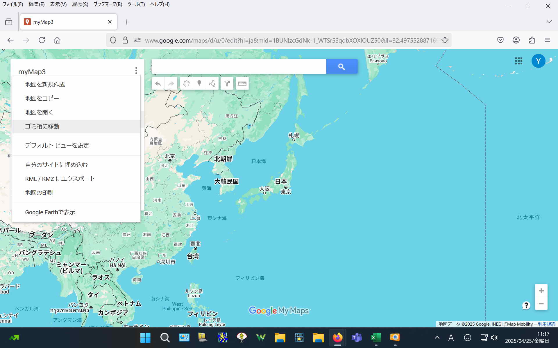 Googleのマイマップの上端に表示されているURLをコピーして ラインなどにペーストする