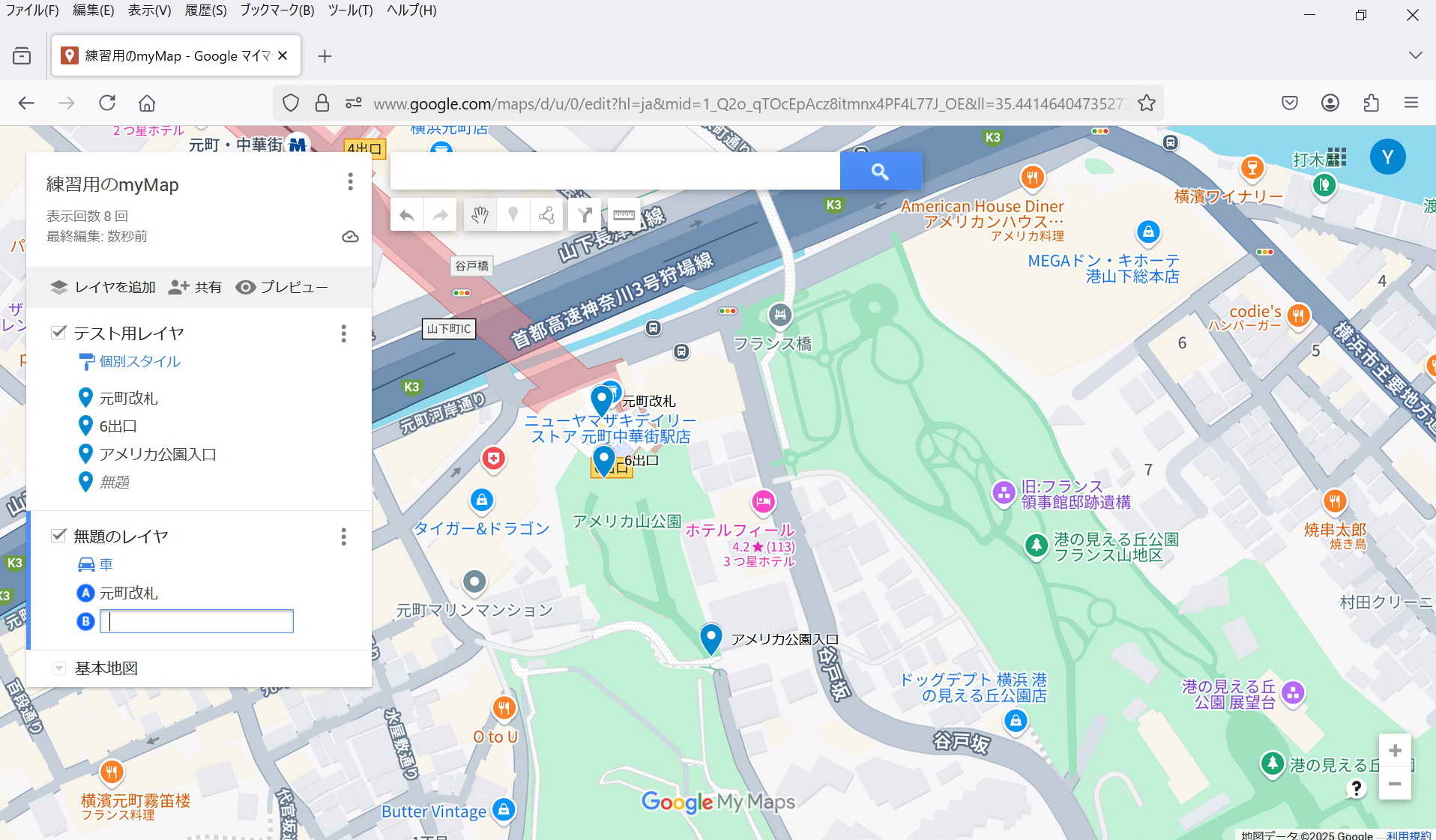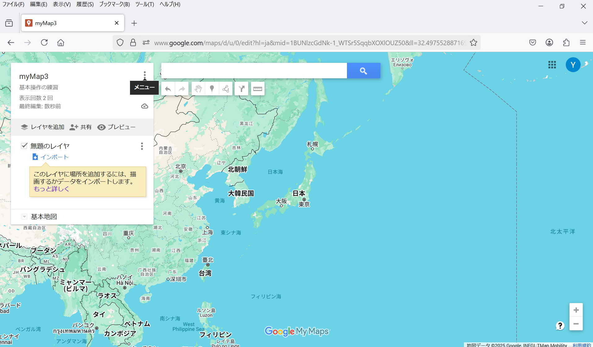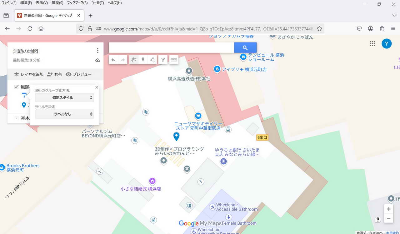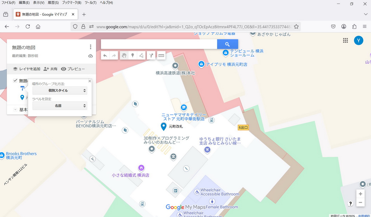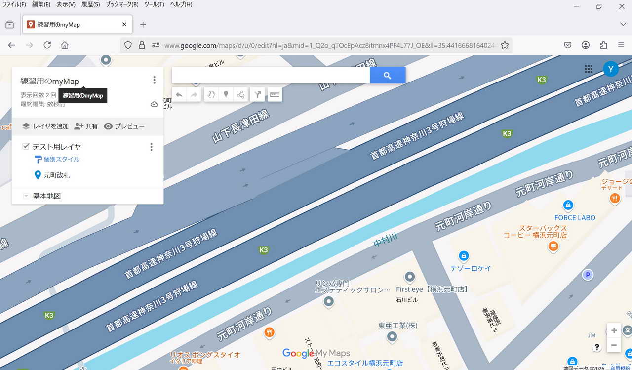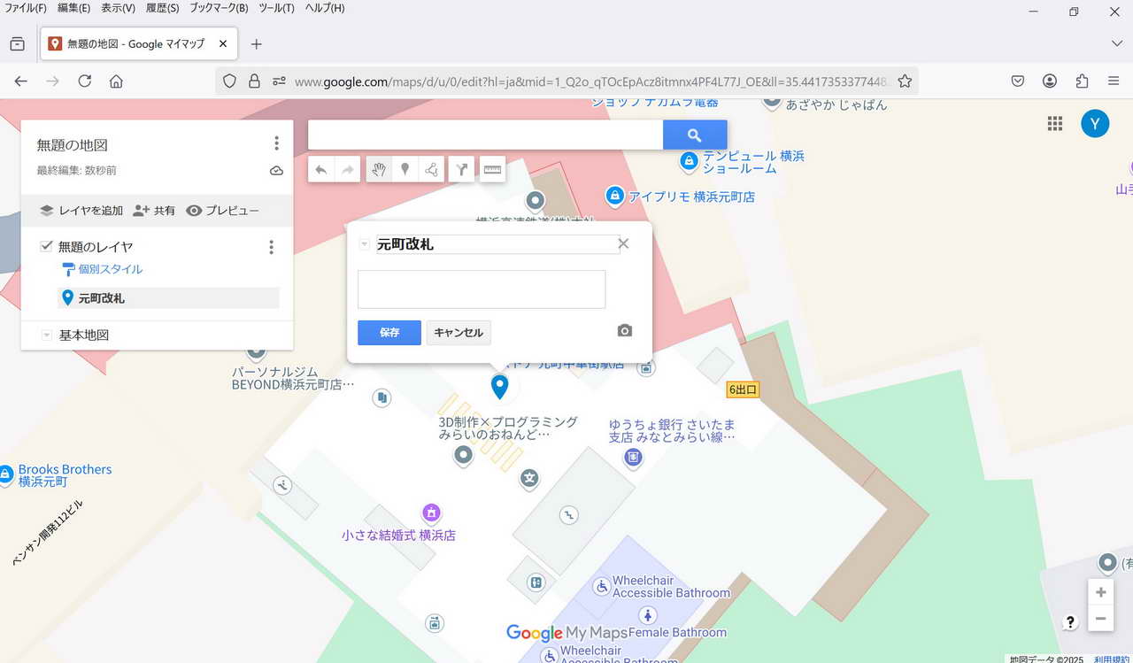 ・保存: 特に保存操作をしなくてもmy Mapは保存される。 マイマップは途中でPCが終了してもその状態が保存されている。