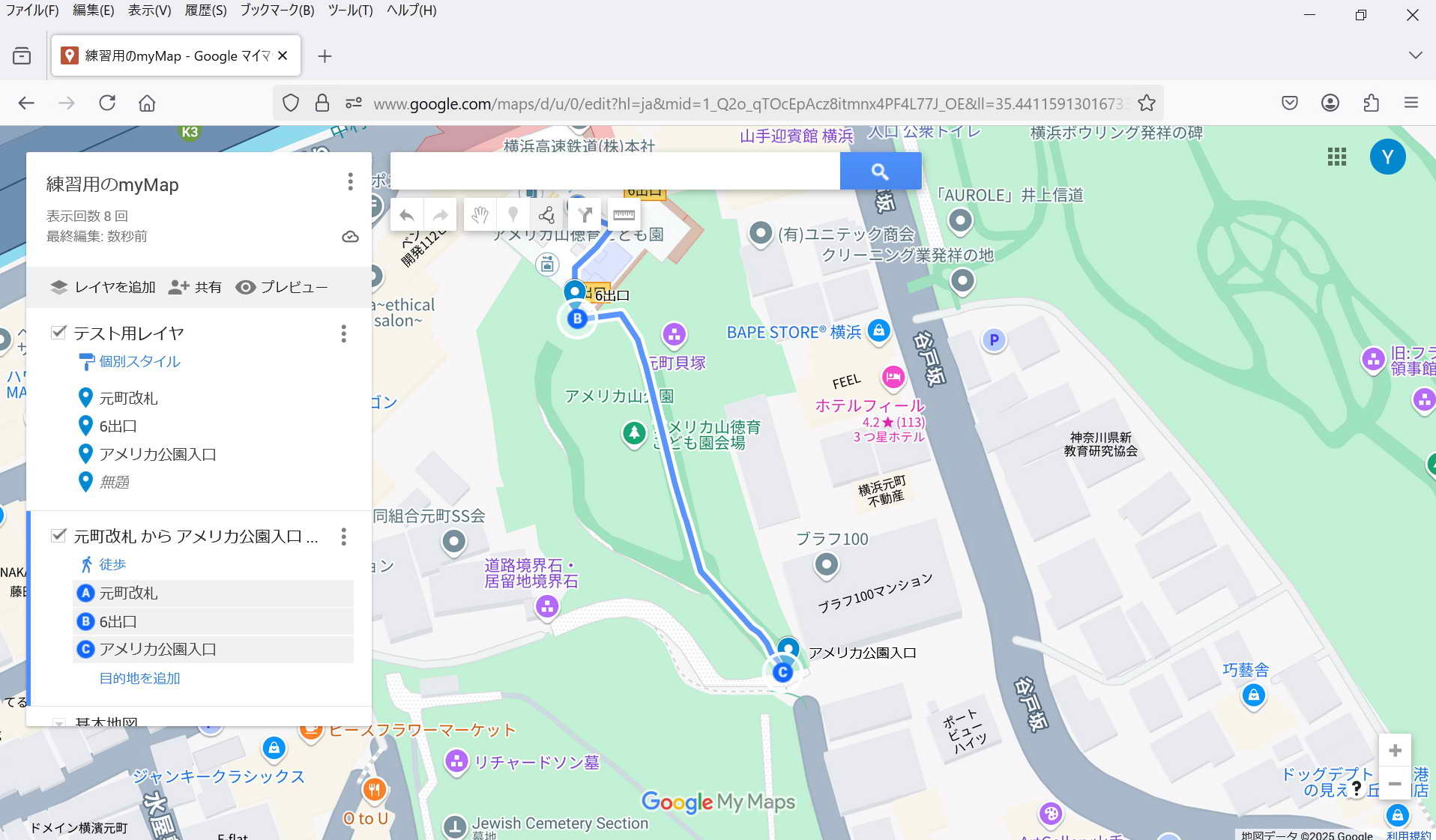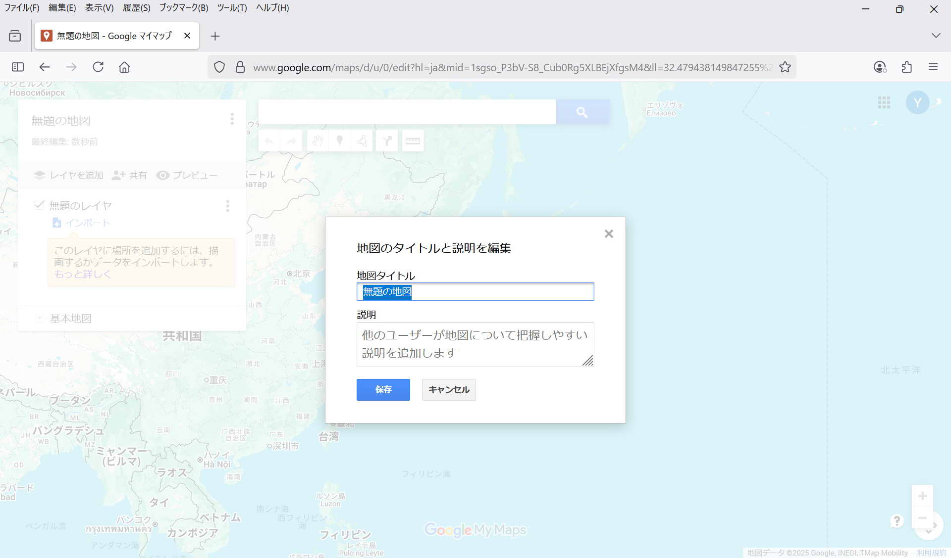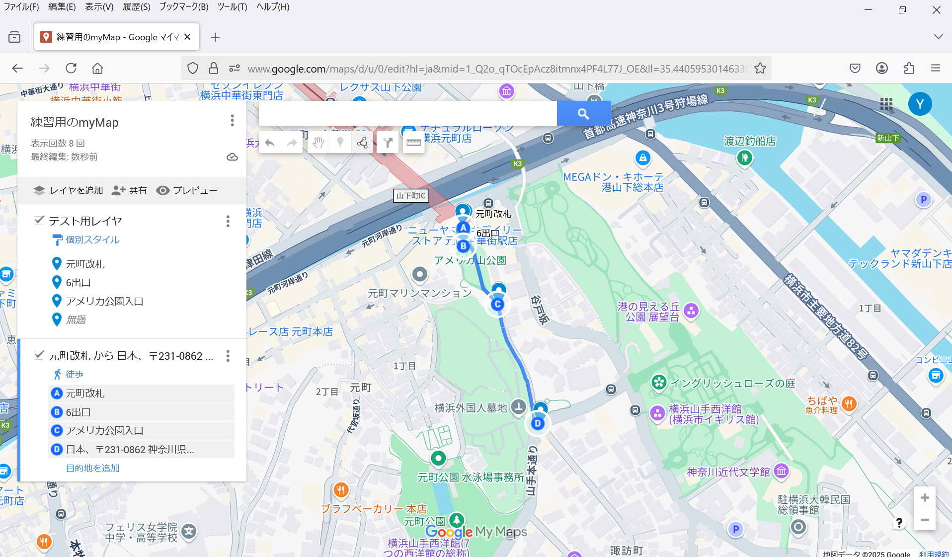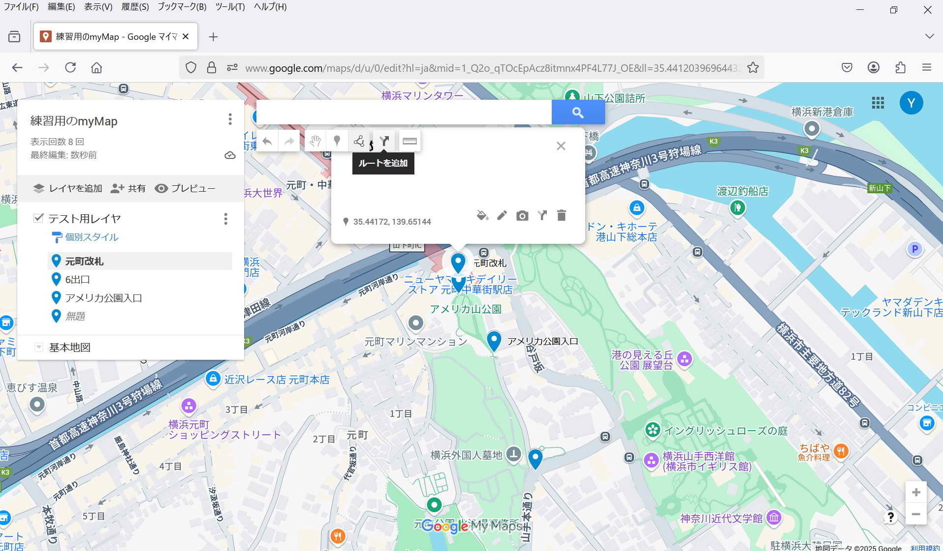 ・保存: 特に保存操作をしなくてもmy Mapは保存される。 マイマップは途中でPCが終了してもその状態が保存されている。