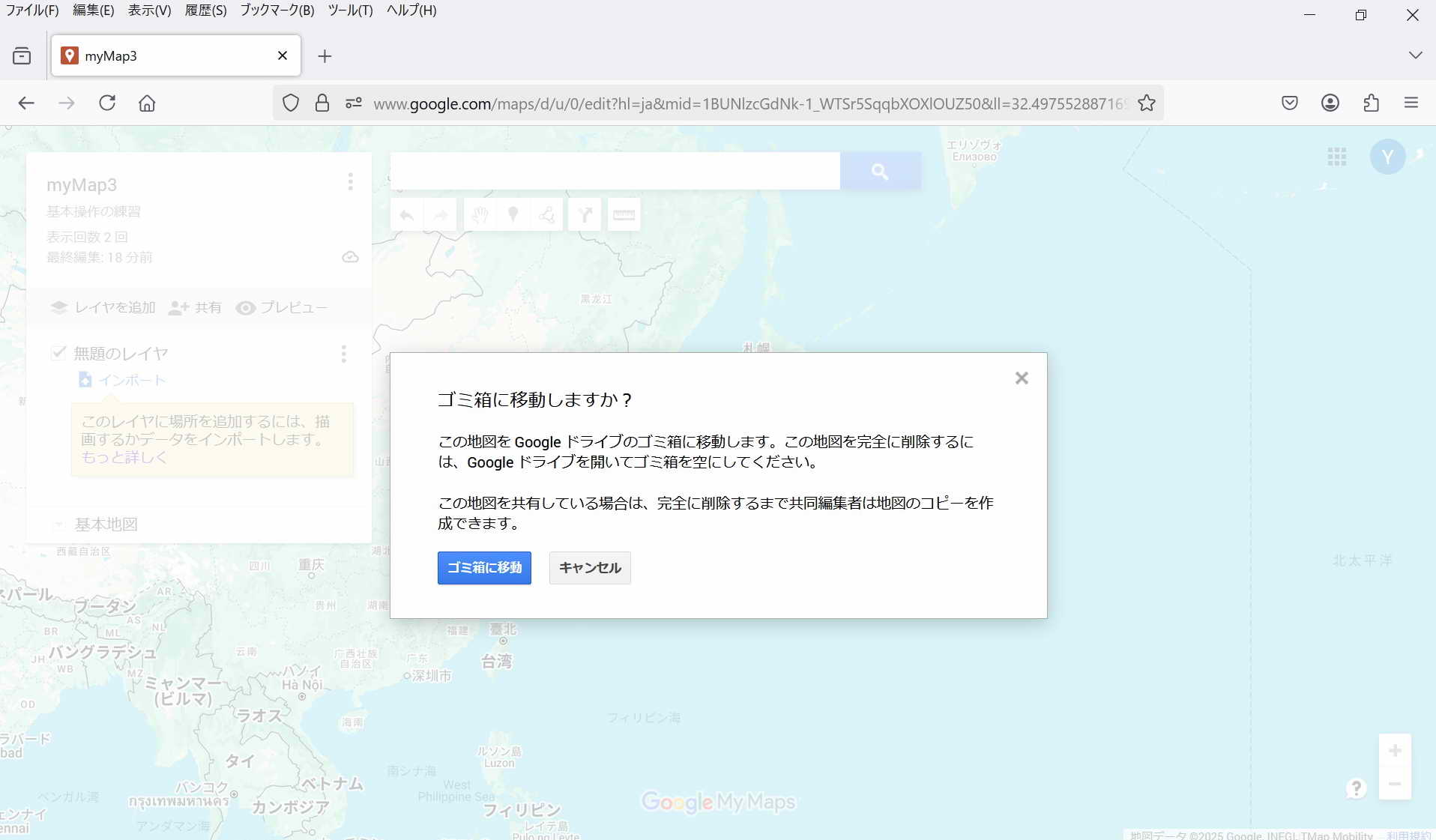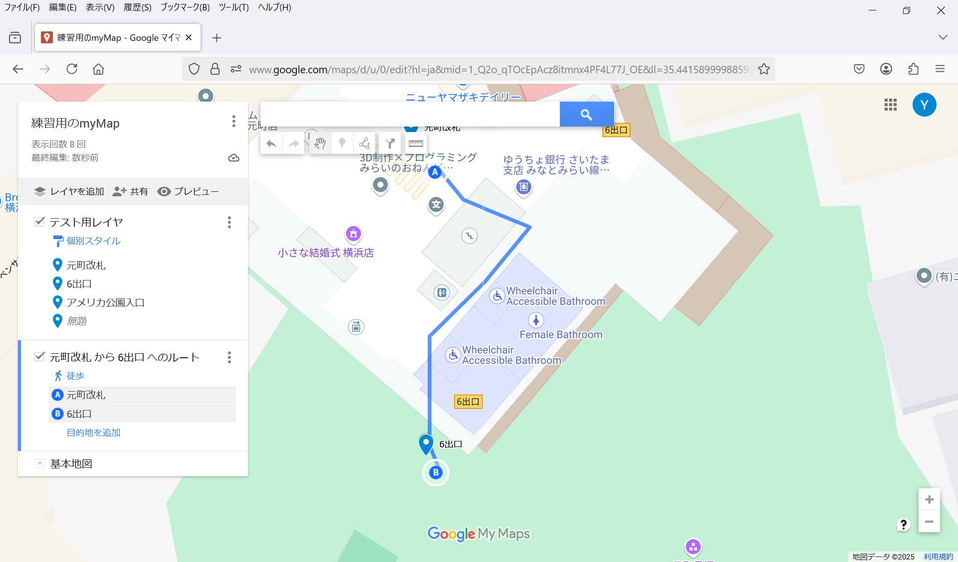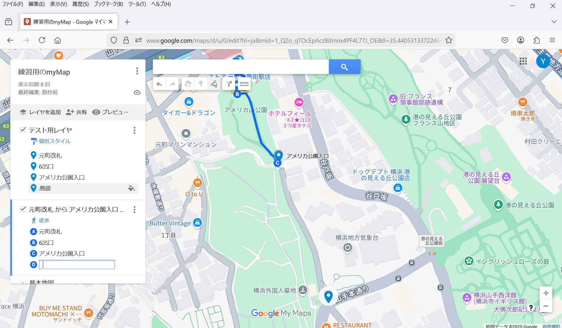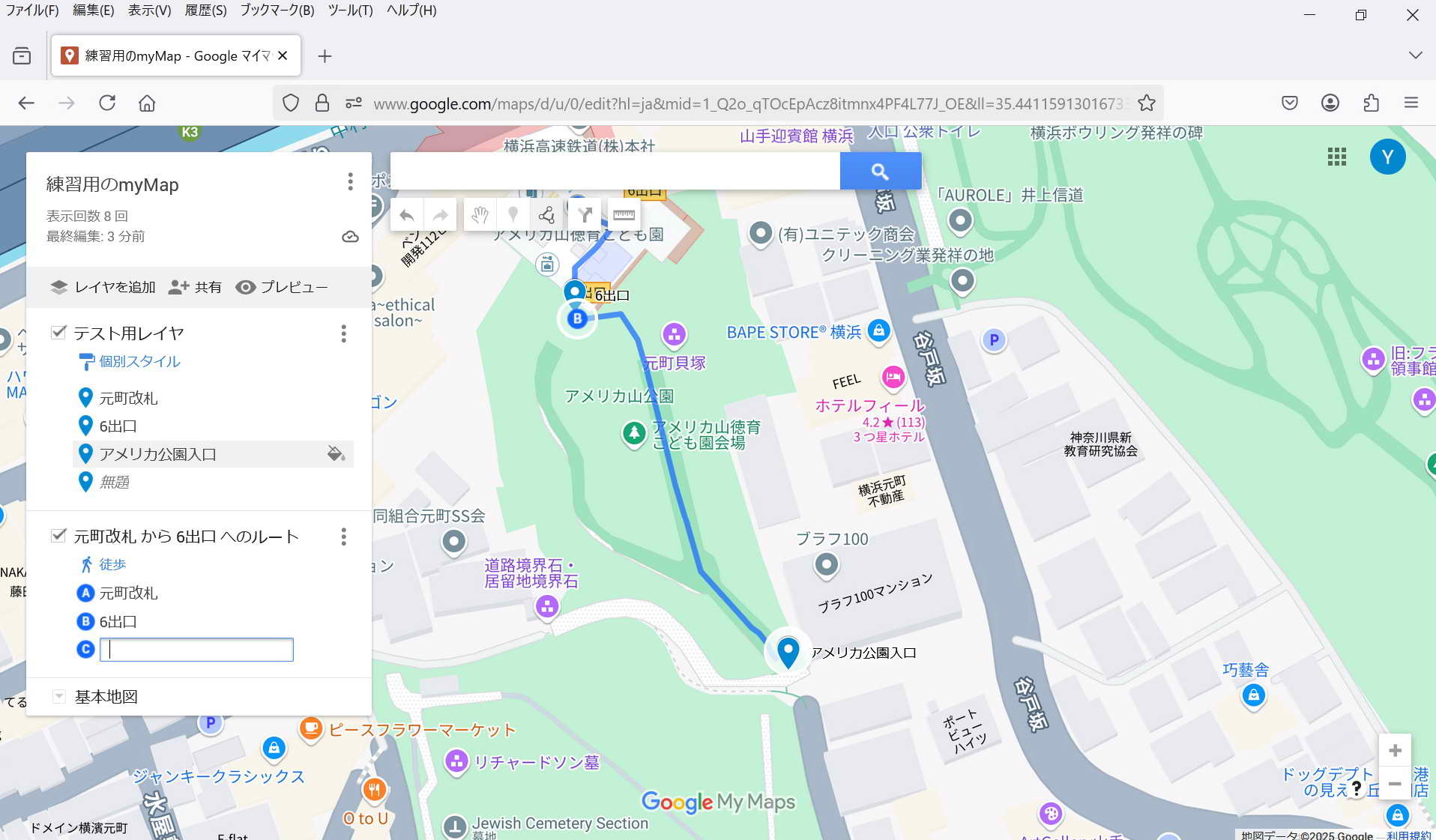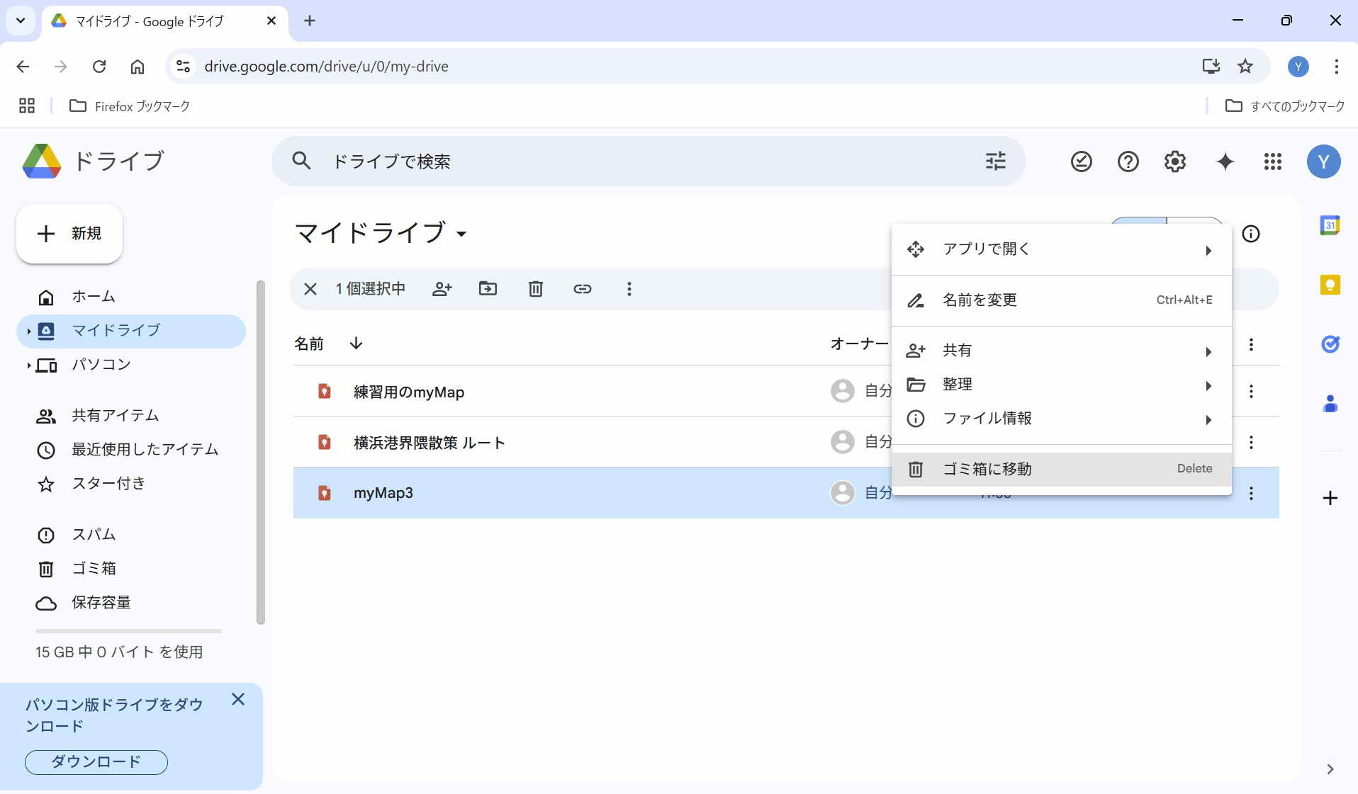 ・保存: 特に保存操作をしなくてもmy Mapは保存される。 マイマップは途中でPCが終了してもその状態が保存されている。