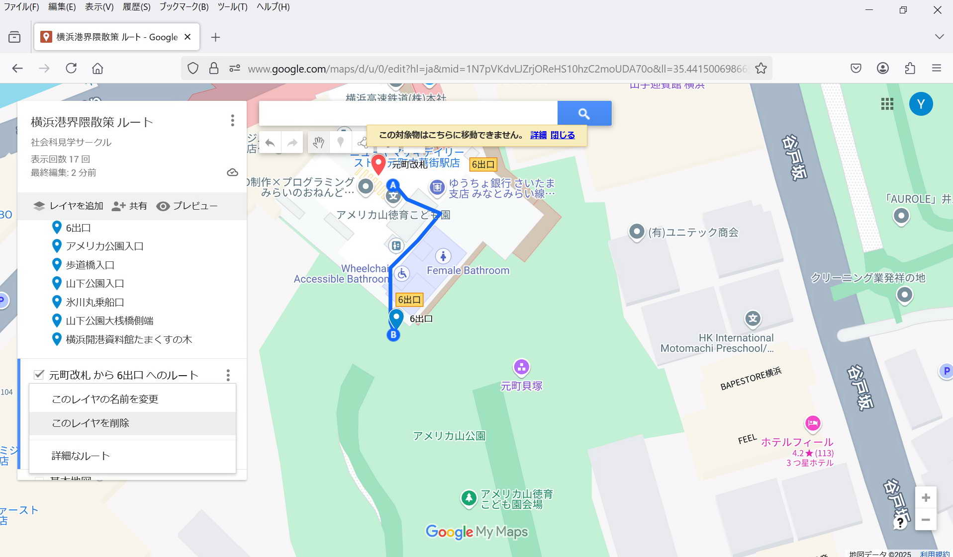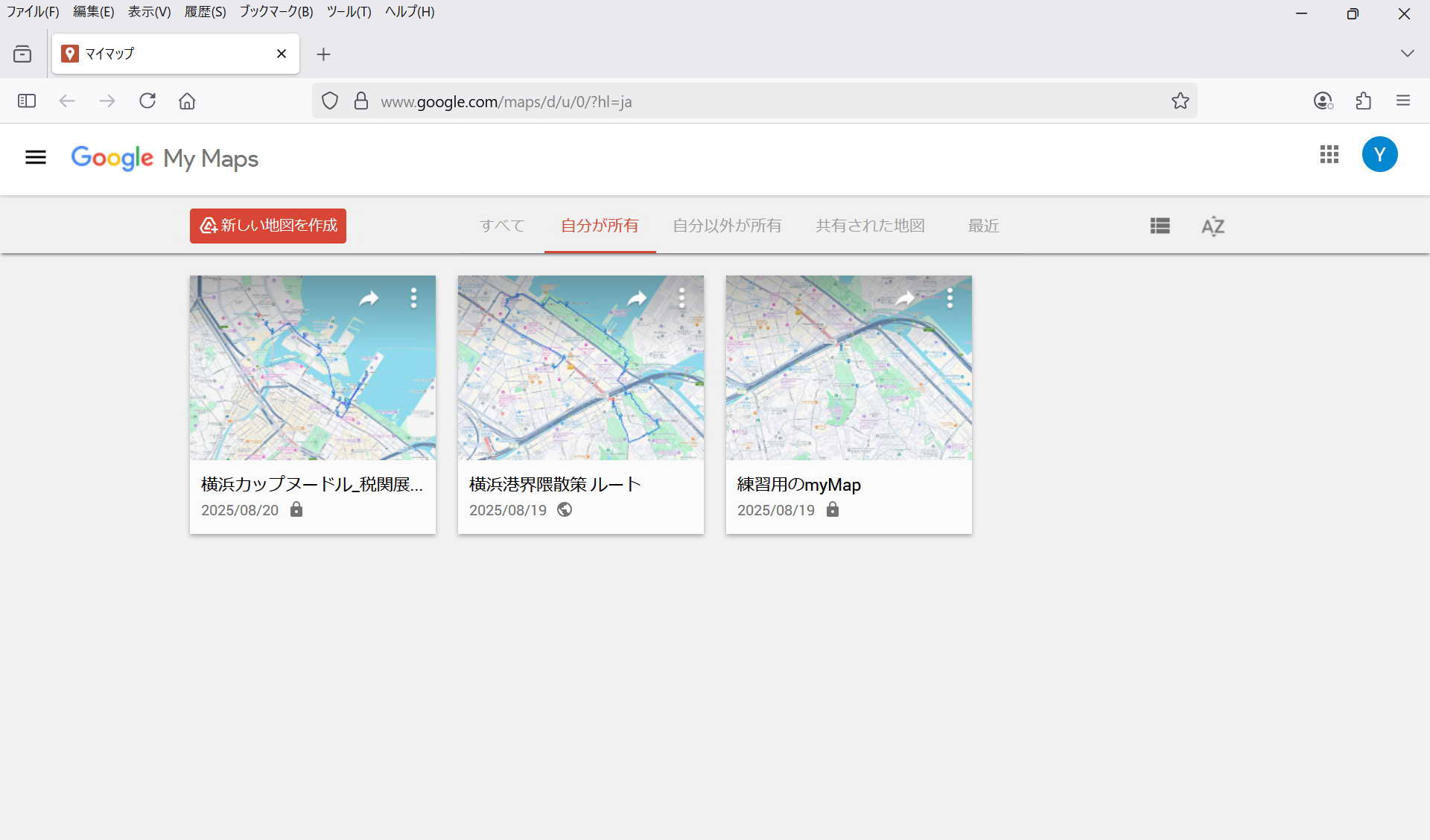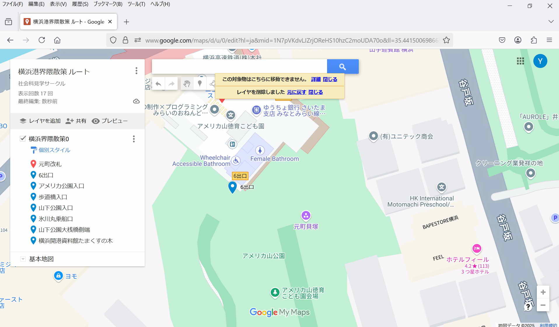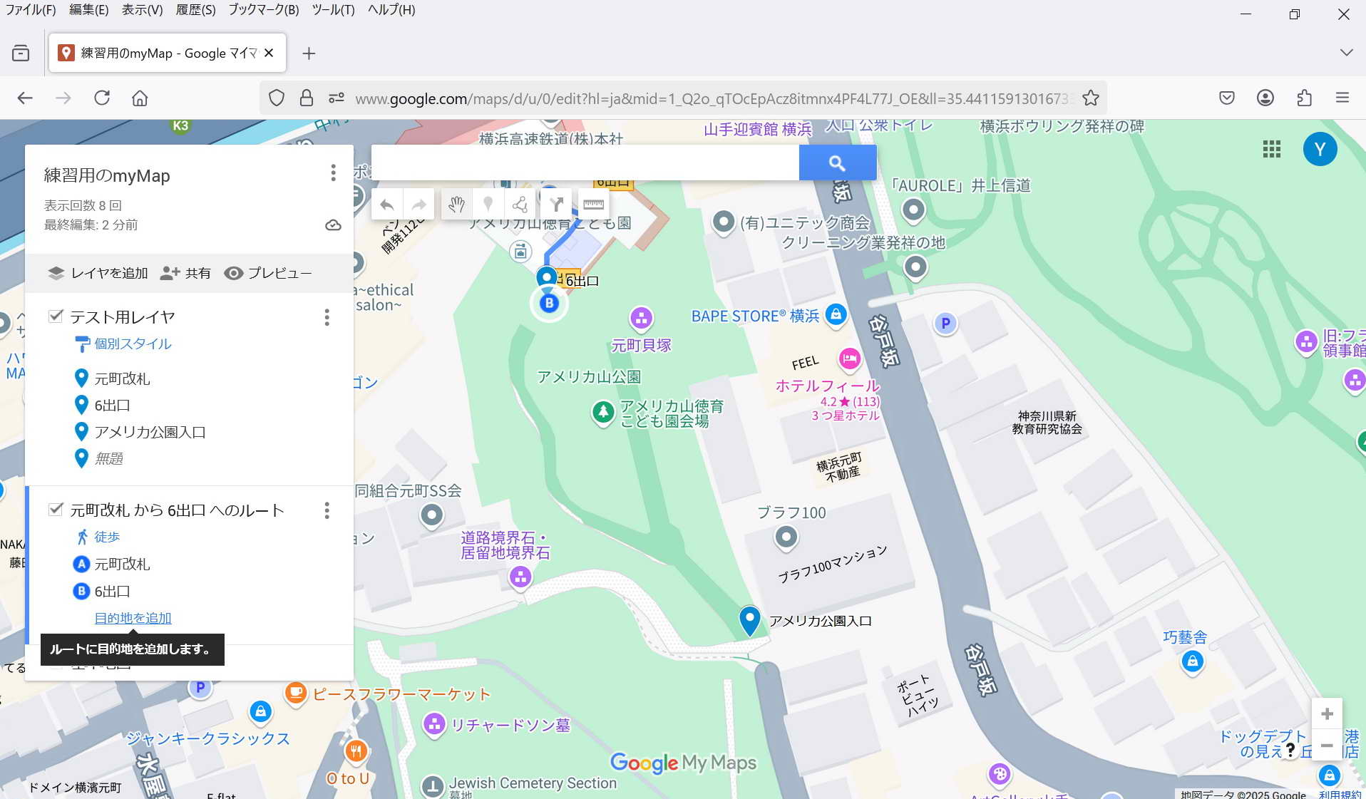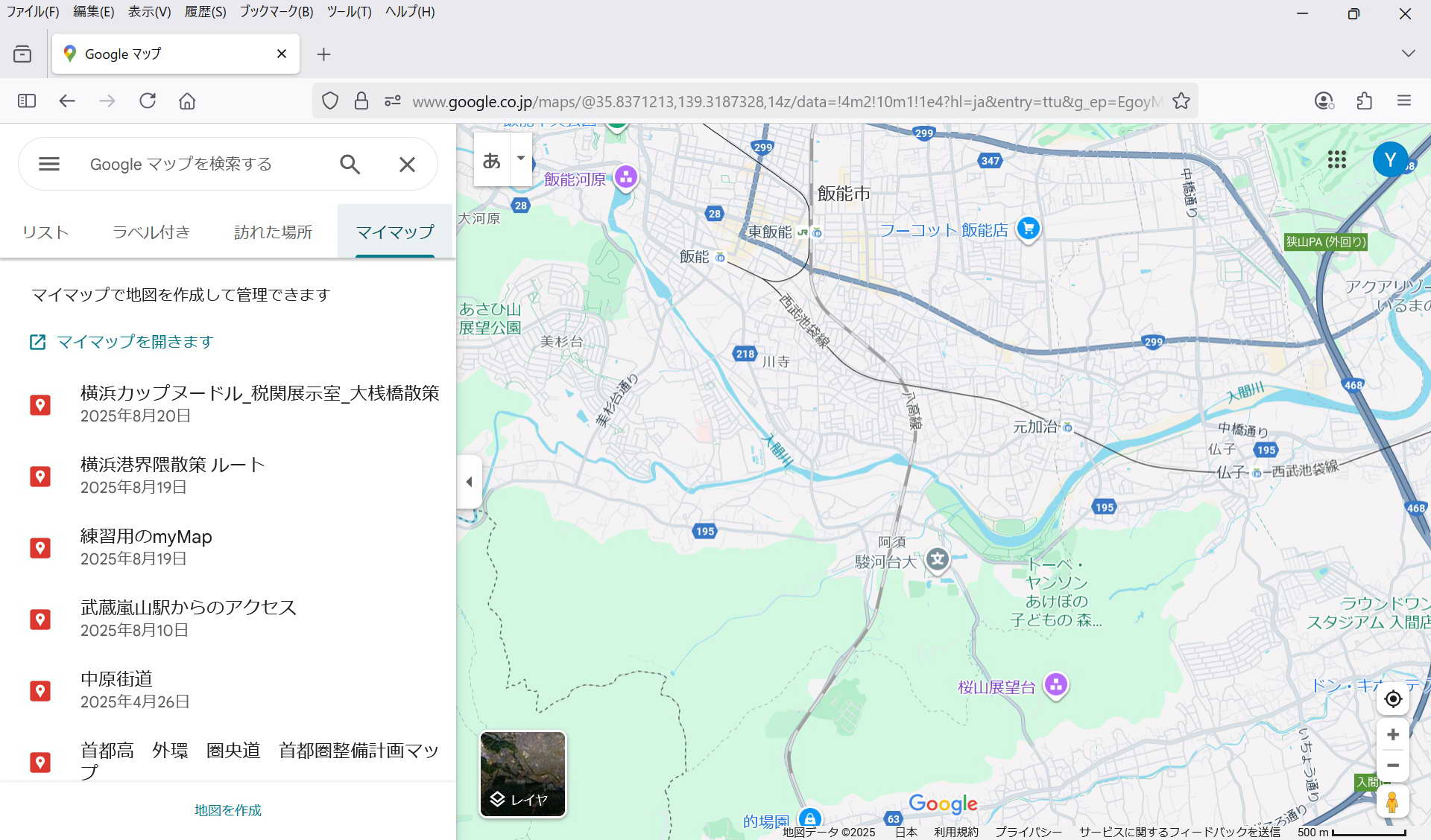 ・保存: 特に保存操作をしなくてもmy Mapは保存される。 マイマップは途中でPCが終了してもその状態が保存されている。