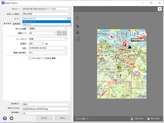 | ・基本設定タブ 1. モード: ドキュメントモード 2. 解像度: 200 dpi (200dpi も 300dpi も見た目それほど差異はない) |