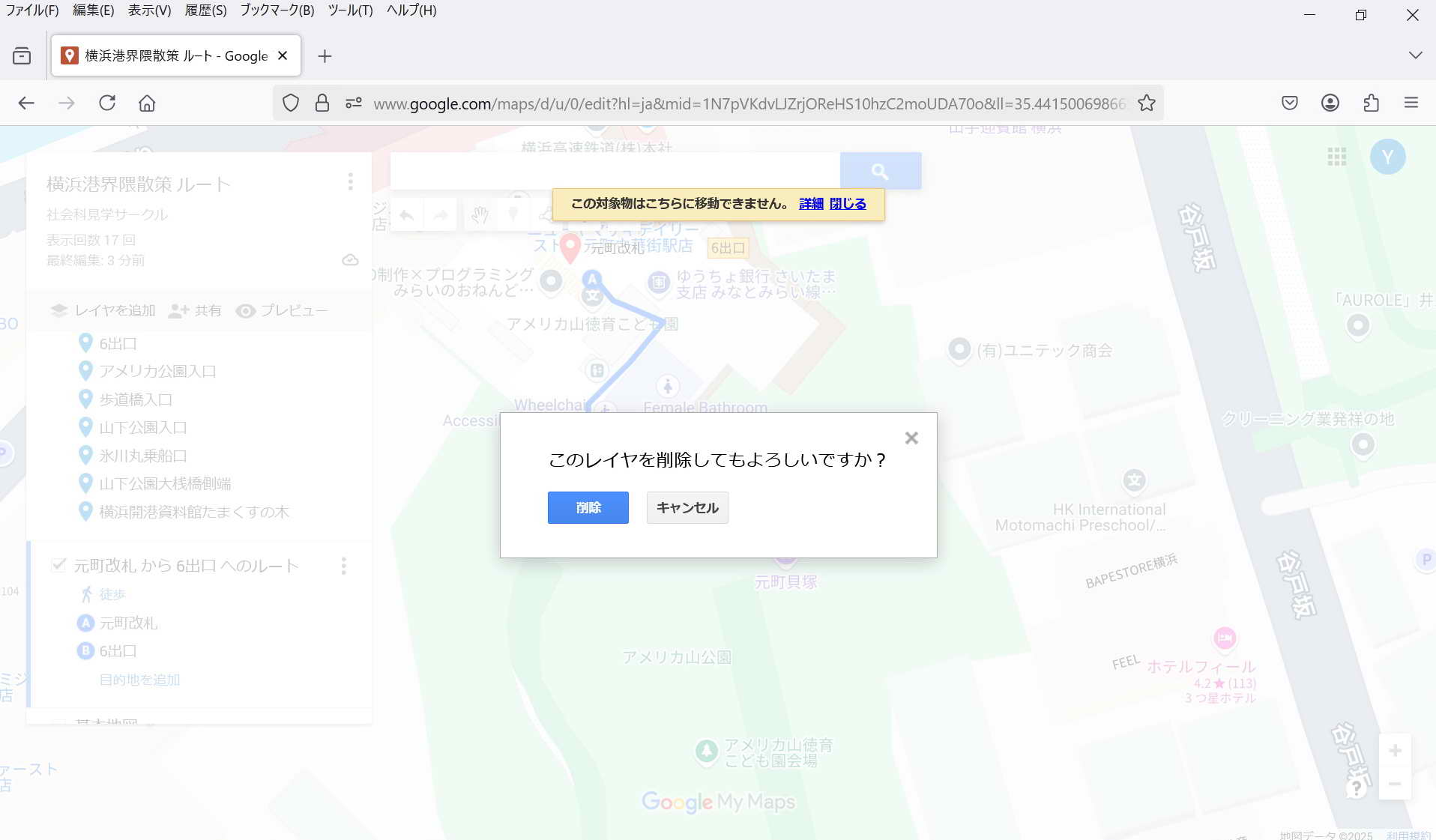 以下に於いては、経路が表示されているレーヤを削除する