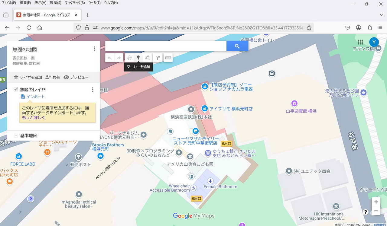 @ マーカーのアイコンをクリックする。