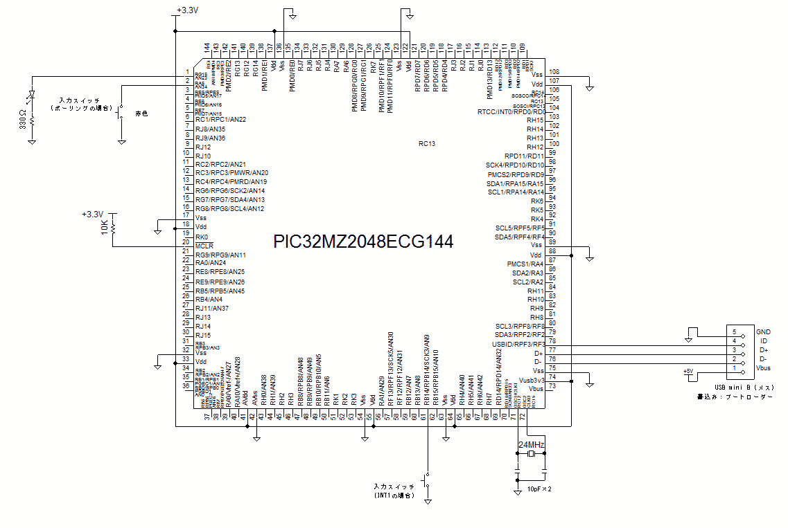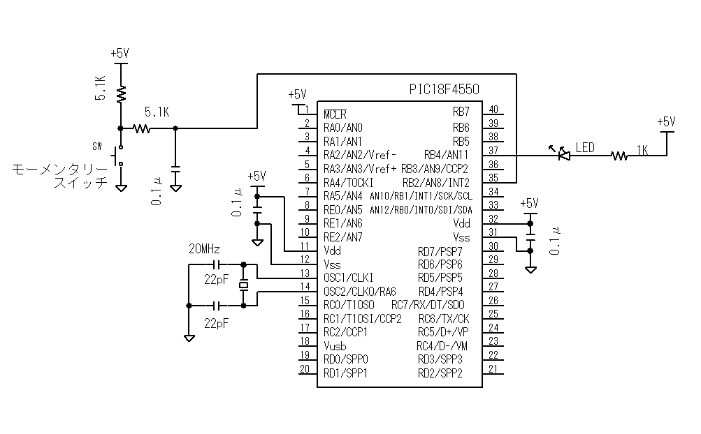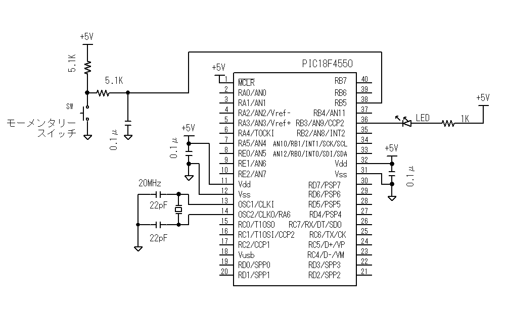 PIC18F4550を使用した例を以下に示します