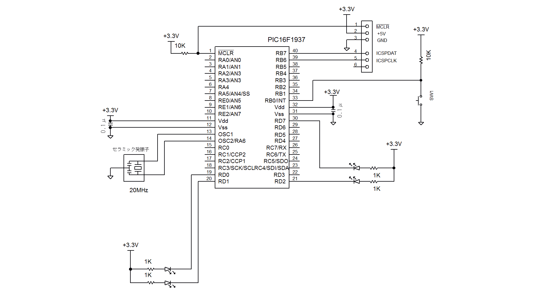PIC16F1937を使用した例を以下に示します