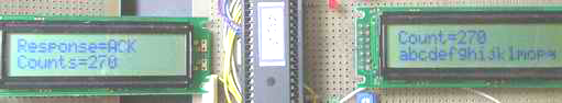 ・送信側PICの液晶の1行目にはACK(サムチェックOK)が受信されたことが表示されています。