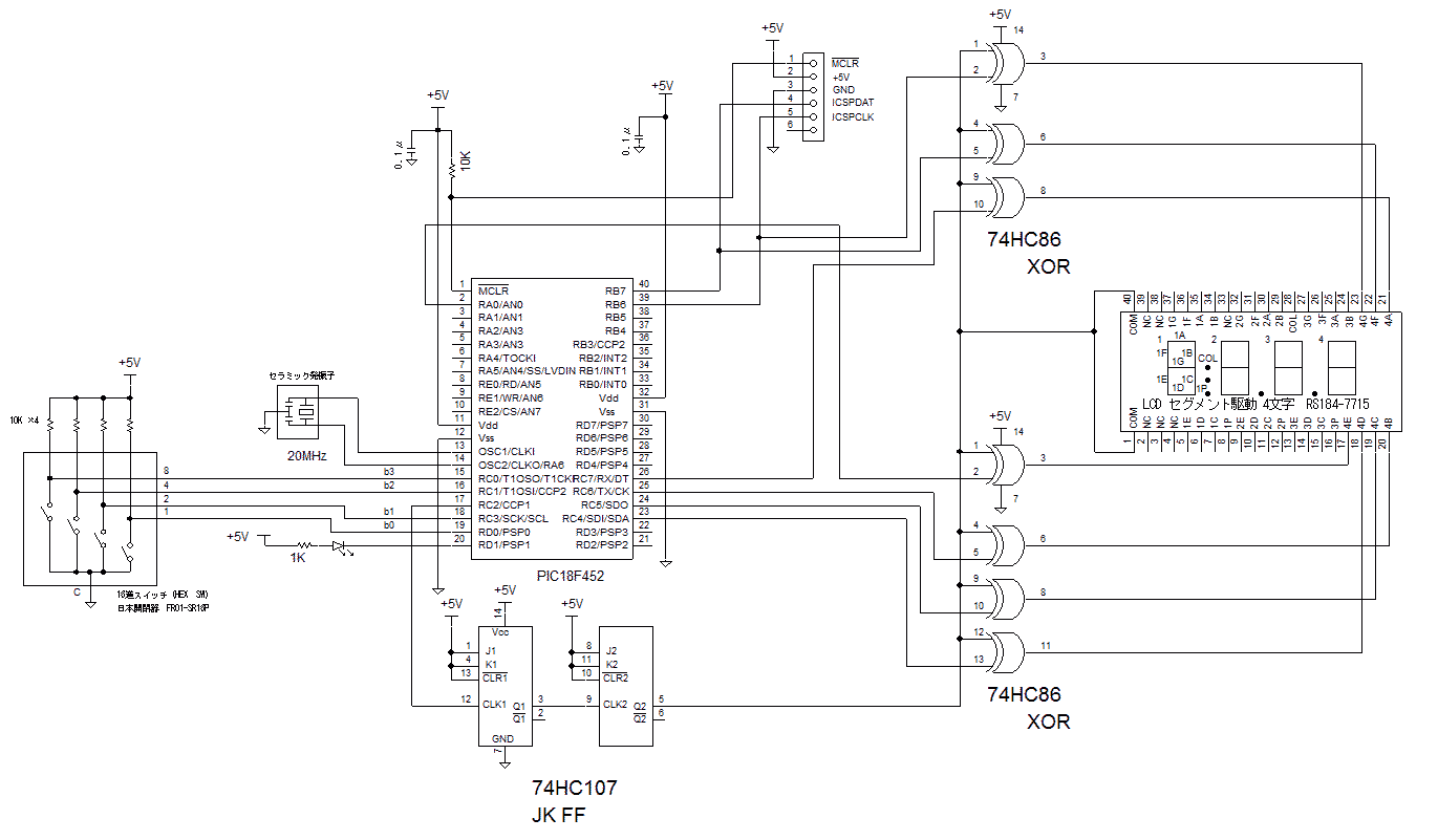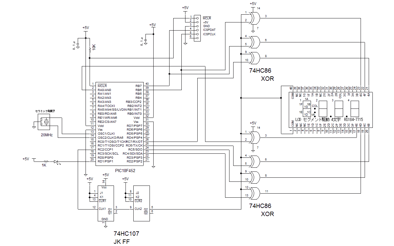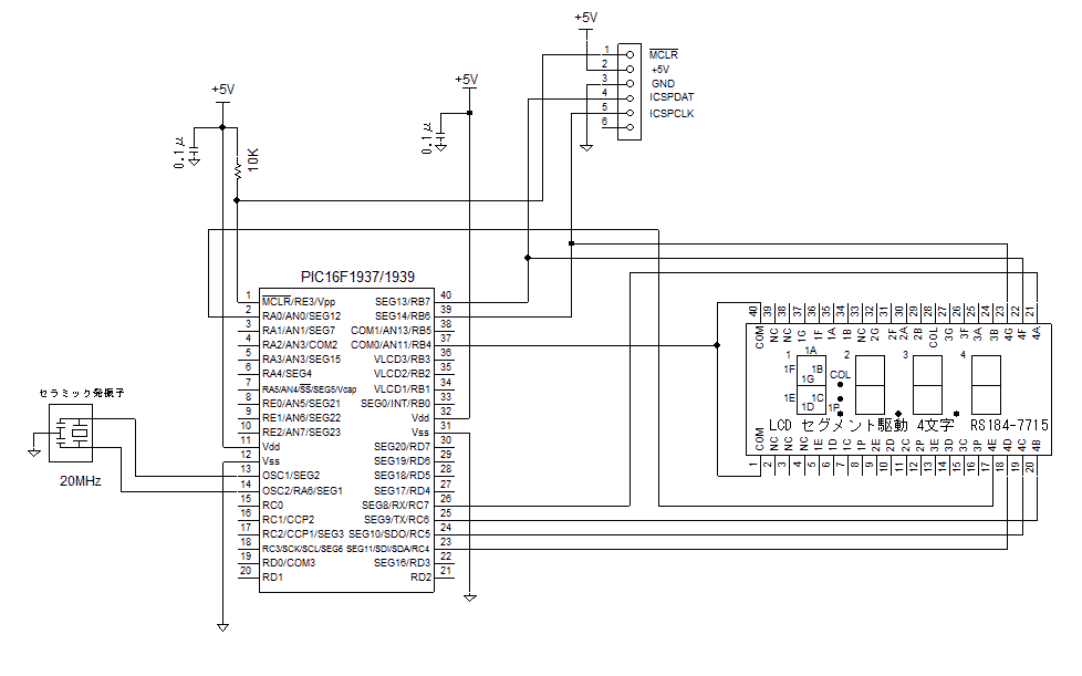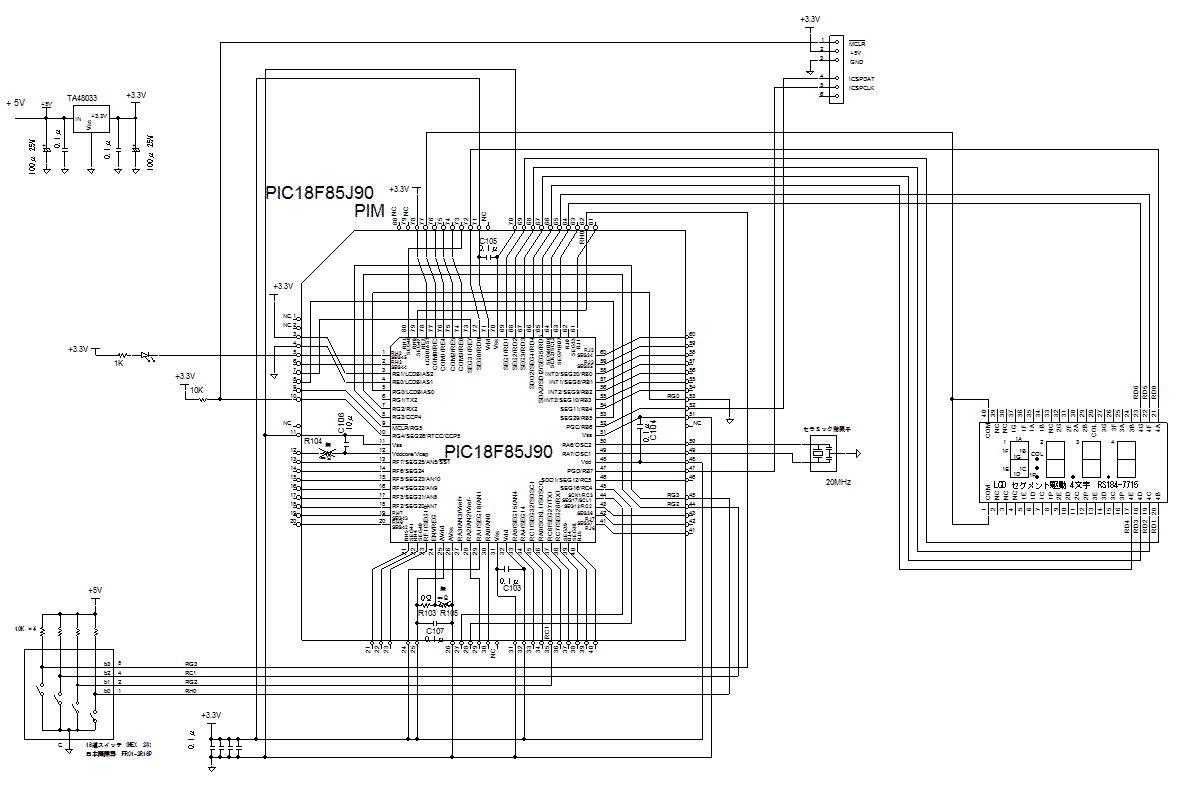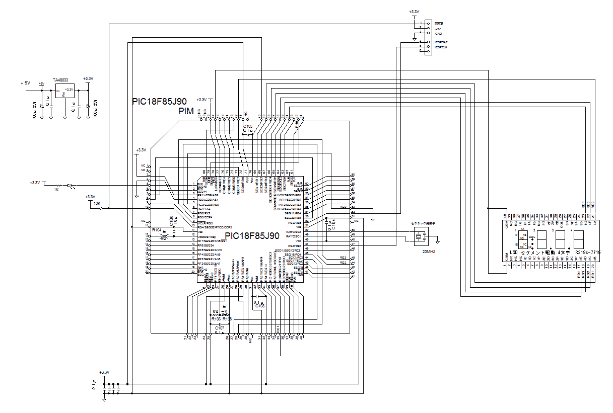 PIC18F85J90、液晶:RSコンポーネント(注) RS184-7715の場合の例を示します。