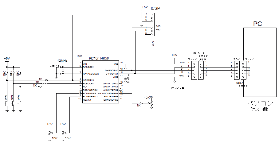 ・PCとPIC間のUSB通信はHIDクラスとする。