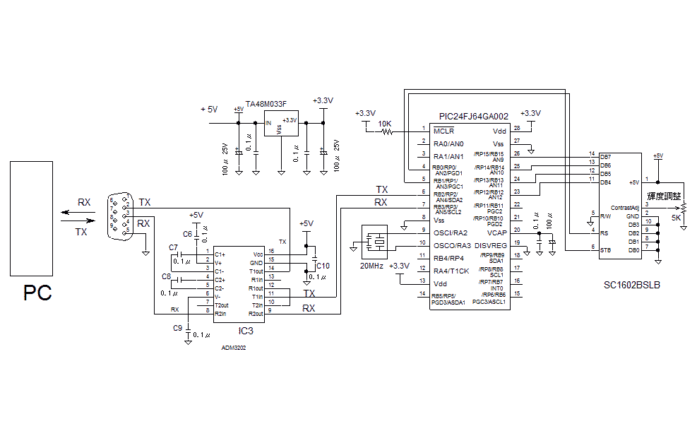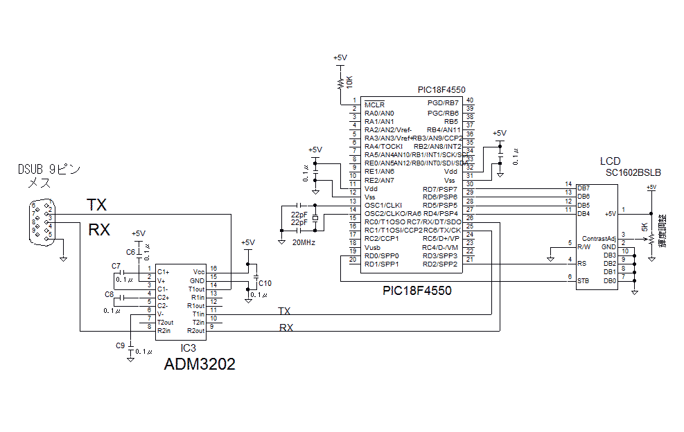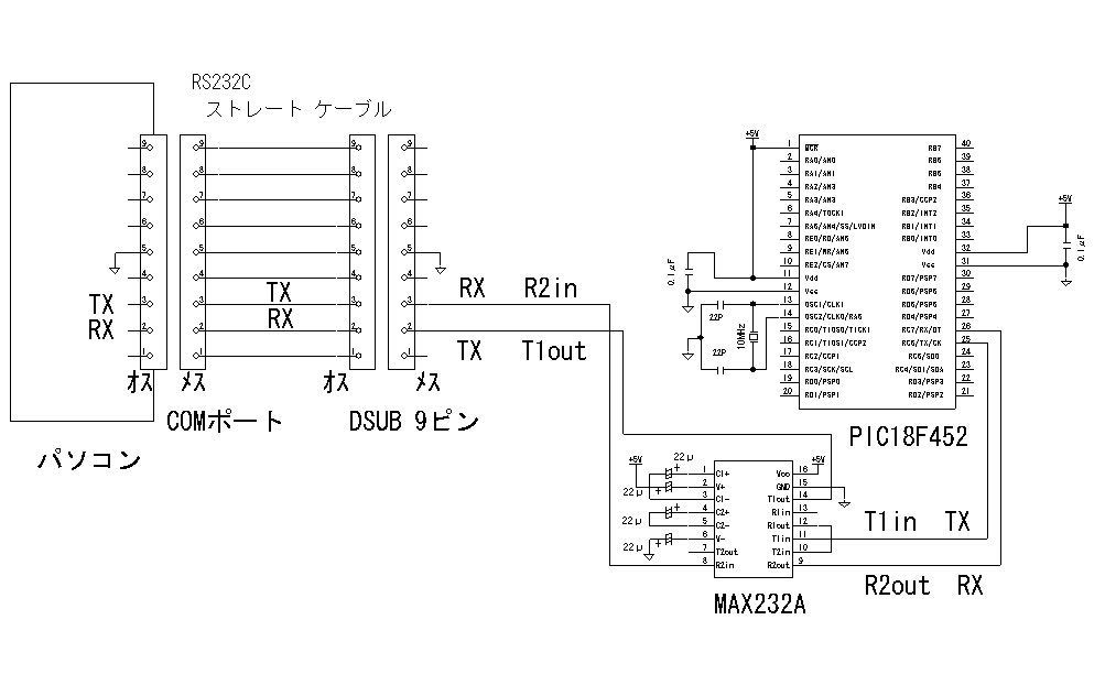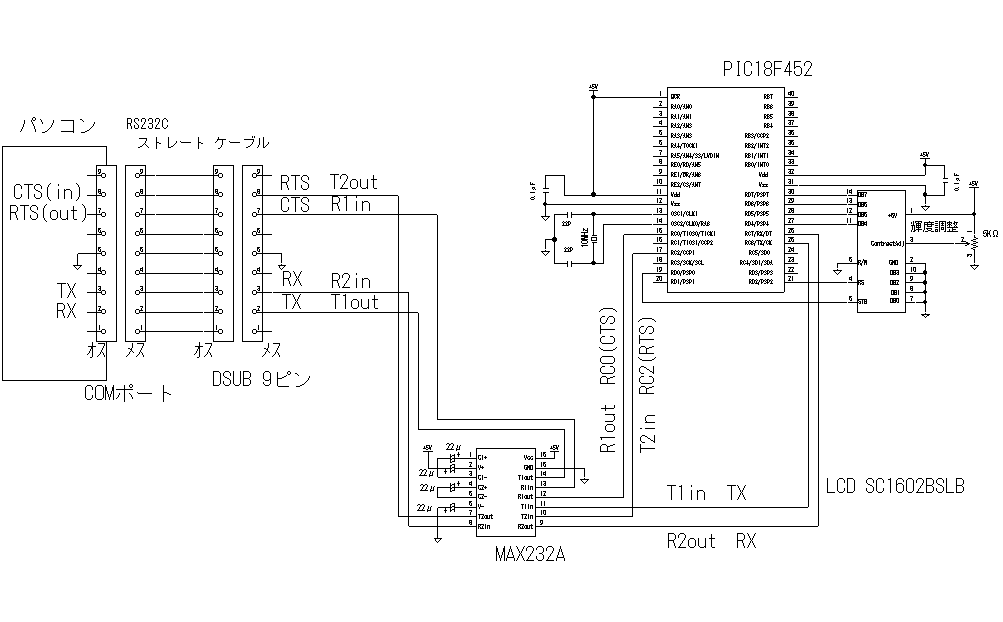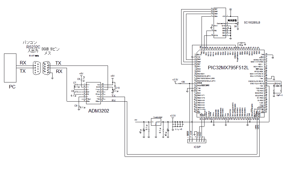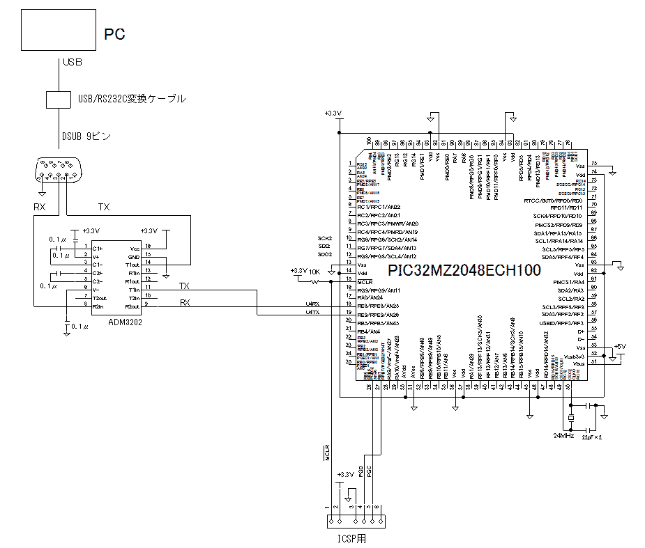 ・PCとターゲットボード間はUSB/RS232C変換ケーブルを使い PIC側からみてのインターフェースはRS232Cとする