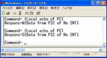 尚、ハイパーターミナルのローカルエコーがOFFになっていると 以下のように Command =   のあとに文字が表示されま