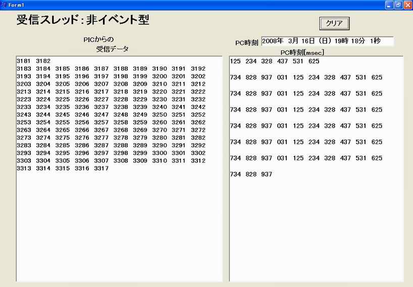 PC側 | PIC側 (上段:受信データ 下段:送信データ)  |