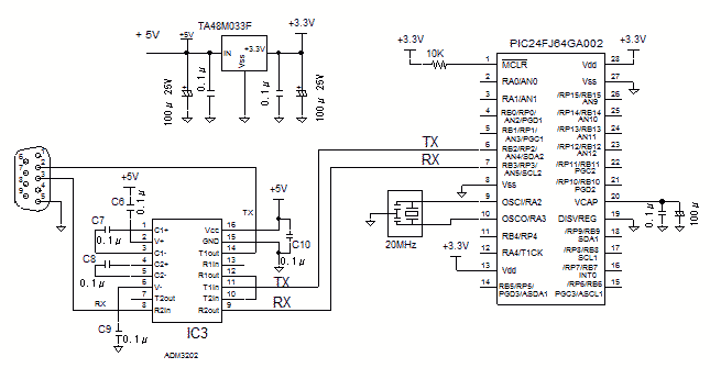 PCとPIC間で実際に送受信されるRS232Cの信号をビットレベルで観測した結果を紹介します。 受信したPICはPIC24FJ64GA002ですが