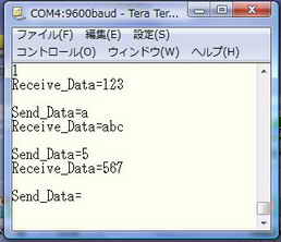・ 最後の行で Send_Data=  となって、キーボードがからの入力待ち状態となっています。