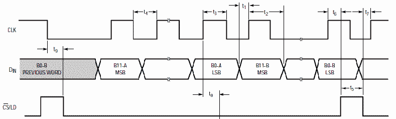 尚、VoutBにも出力する場合は、VoutAのLSBを出力した後にすぐVoutBのMSBから順次同様にDinに出力