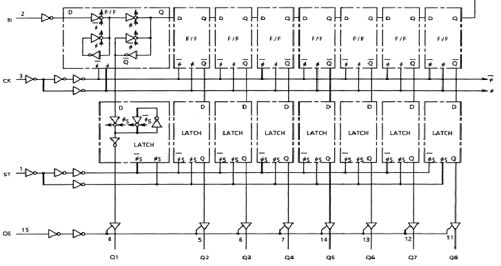J STをLowにする。出力された値はホールドされている。次のデータがQ8〜Q1にセットされるまでSTはLowにして