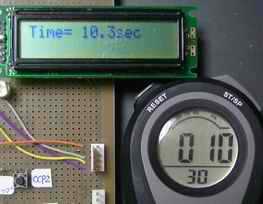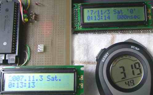 市販のストップウォッチと同時に約10秒間 Start/Stop動作させた時の写真です。左側が動作前で右側が動作後の