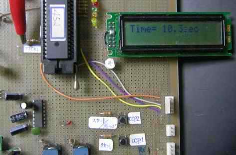 ・ CCP1、CCP2 キャプチャー入力端子に入力された矩形波のHighレベル時のパルス幅を測定し液晶の1行目に
