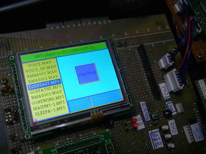 タッチパネル式のWAV録音機能付きのMP3プレーヤの試作例を紹介します。 液晶グラフィック制御には、マイクロチップのGDDX(Graphics Display Designer X) を