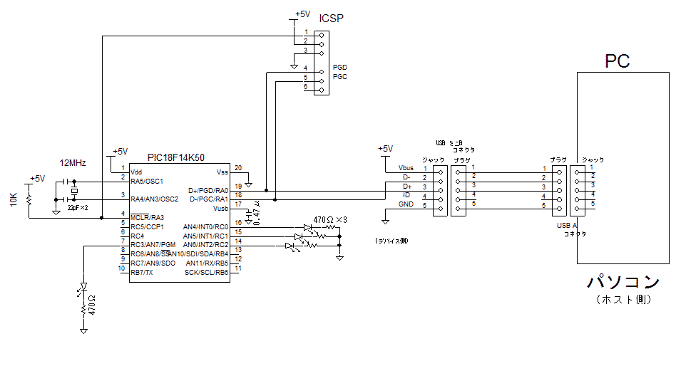 ・PCとPIC間のUSB通信はHIDクラスとする。