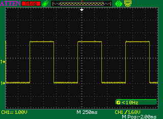 | ・通常モードでLEDが点滅している時の RG3ポートの電圧波形です。 | ![]() |